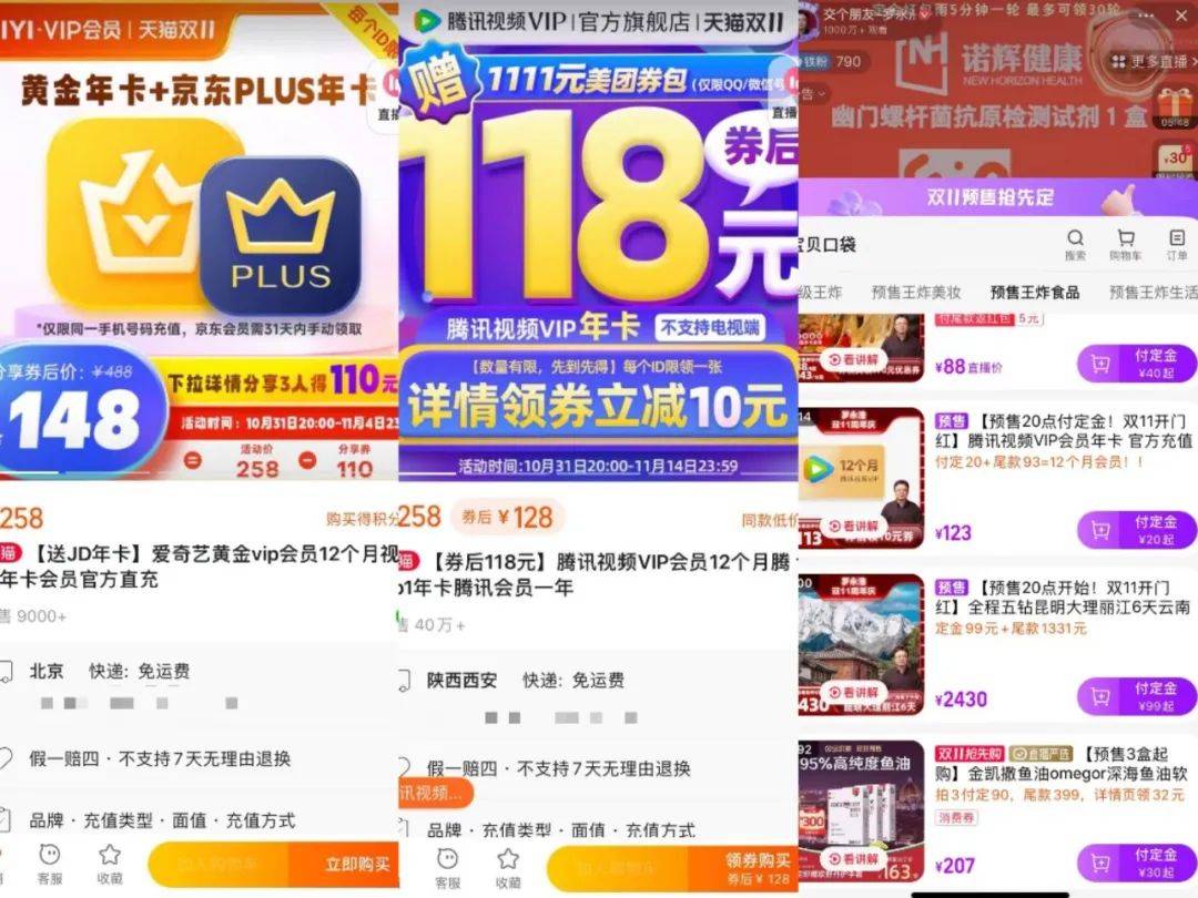 只不過打開愛奇藝淘寶天貓旗艦店,愛奇藝黃金VIP年卡雙11優(yōu)惠、愛奇藝VIP+京東PLUS雙11優(yōu)惠等系列活動(dòng)已經(jīng)開始,而這一次使用的“套路”是分享多少人更優(yōu)惠的拼多多式營(yíng)銷;另一邊的騰訊視頻淘寶天貓旗艦店,則是更直接的“送券”與“送券包”,騰訊視頻VIP也出現(xiàn)在羅永浩直播間里,喊出預(yù)售123元的低價(jià)。