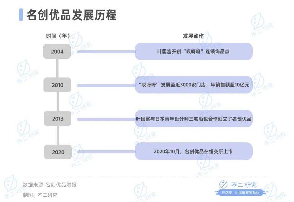 2013年,葉國富與日本青年設(shè)計師三宅順也合作創(chuàng)立了名創(chuàng)優(yōu)品。創(chuàng)立之初,其憑借性價比優(yōu)勢以及門店快速擴張帶來的規(guī)模效應(yīng),迅速發(fā)展至全國各大城市。并于2020年10月在紐交所成功上市。
