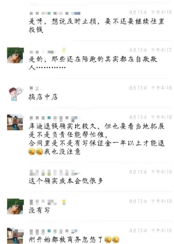 不少聯營商就曾在社交媒體平臺反饋,想找庫迪退錢,結果總是無人受理,在網傳的疑似庫迪咖啡聯營商維權的群聊記錄顯示,一部分不愿認栽的庫迪咖啡聯營商們似乎已經準備訴諸于法律,要求庫迪退費……