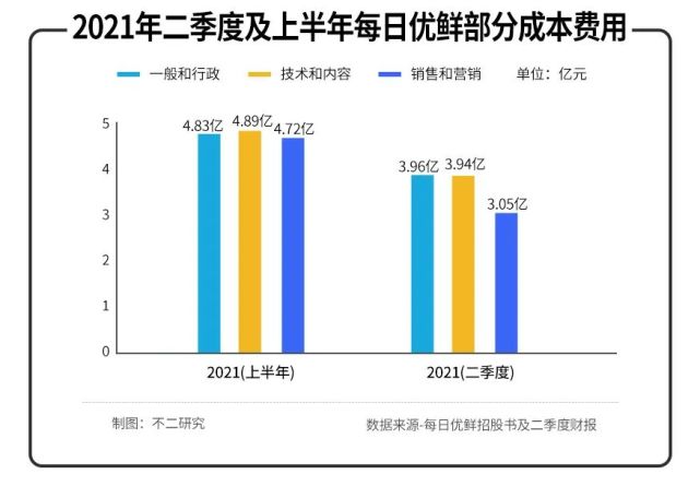 今年上半年,每日優(yōu)鮮的一般和行政費(fèi)用、技術(shù)和內(nèi)容費(fèi)用、銷(xiāo)售和營(yíng)銷(xiāo)費(fèi)用,分別為4.83億元、4.89億元、4.72億元,同比增長(zhǎng)243.51%、163.06%、98.61%。