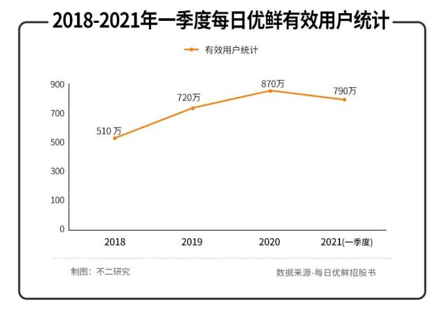 招股書(shū)顯示,2018 -2020年及2021一季度,每日優(yōu)鮮在小程序與 App 合計(jì)有效用戶(hù)為 510 萬(wàn)、720 萬(wàn)、870 萬(wàn)和790萬(wàn);另?yè)?jù)極光《2021年Q2移動(dòng)互聯(lián)網(wǎng)——行業(yè)數(shù)據(jù)研究報(bào)告》顯示,在2021年6月,每日優(yōu)鮮的月活用戶(hù)為666.7萬(wàn)。