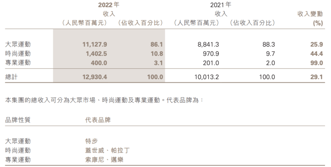 這一點主要體量有限所致,根據特步集團2022年財報:其全年營收129億元,全年凈利潤9.22億元。論營收,差不多是李寧的一半,安踏的四分之一;論利潤率,也較前兩者為低。