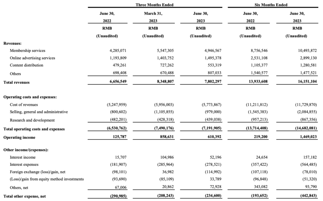 愛奇藝Q2財報