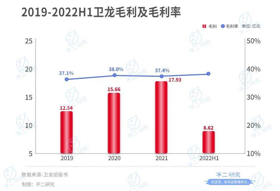 從毛利來看,招股書顯示衛(wèi)龍2019-2022上半年分別實現(xiàn)毛利12.54億、15.66億、17.93億和8.62億,毛利率37.1%、38.0%、37.4%和38.1%。