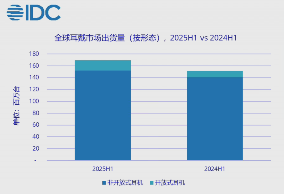 在全球開放式市場競爭格局中,作為開放式產品中最先發展的形態,2025年上半年全球耳戴設備市場出貨量達到1.7億臺。