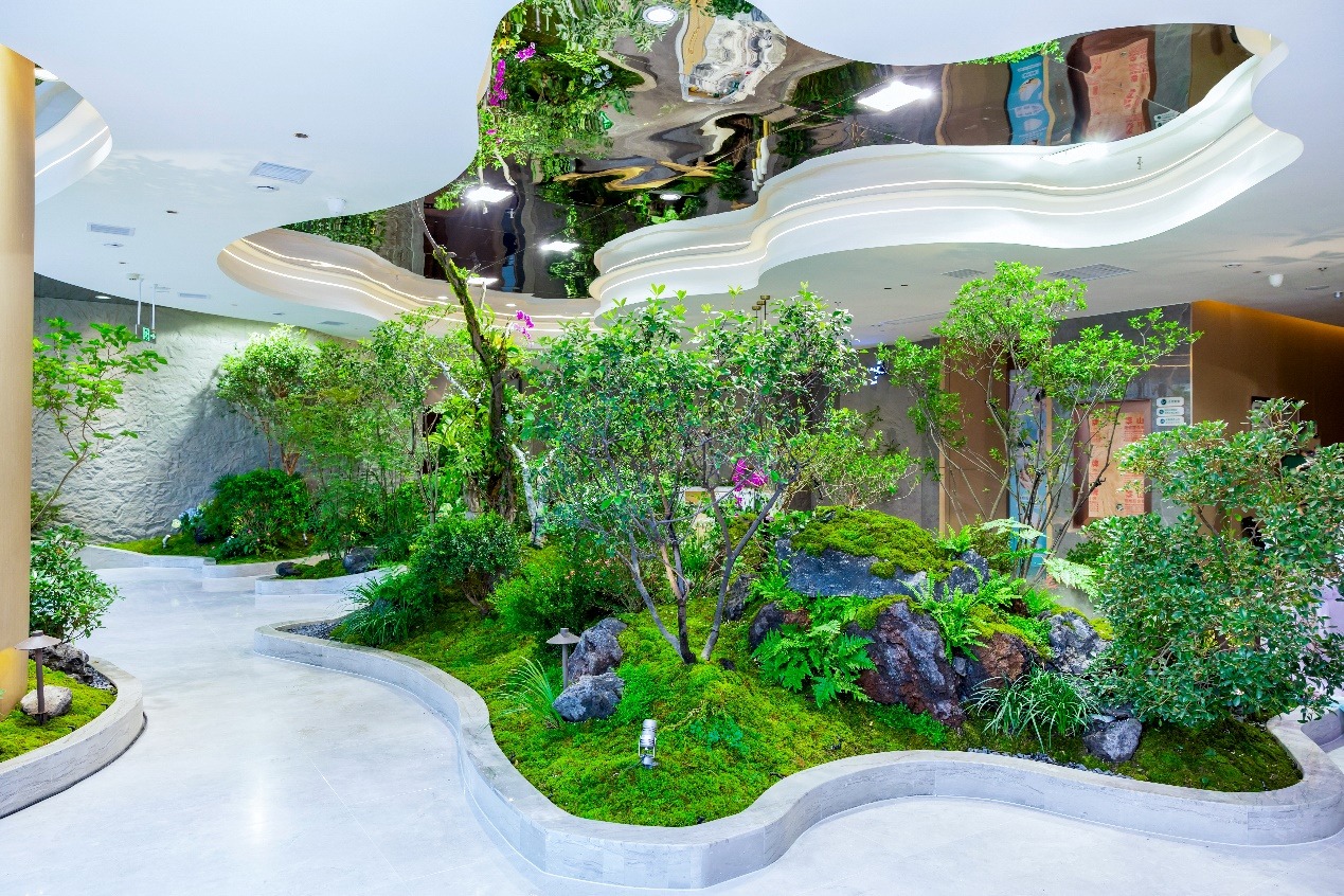 借助中國古典園林移步換景的意境之美,以綠植、水景、山景為靈感,華創店做到了移步易景,給人以身在都市而勝似江南之感。