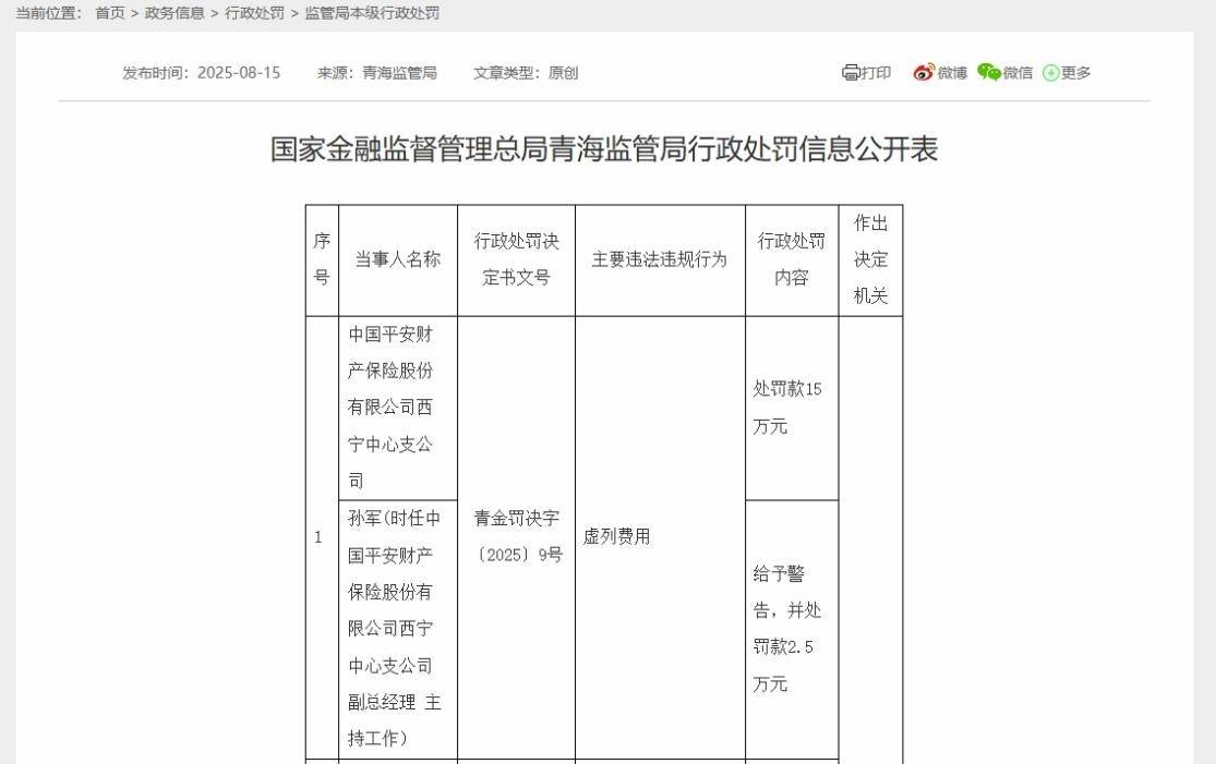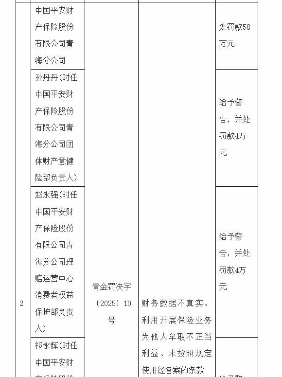 2025年8月15日,平安產險西寧中心支公司因“虛列費用”被青海金融監管局處罰款15萬元,而同日,平安產險青海分公司更是因“財務數據不真實、利用開展保險業務為他人牟取不正當利益、未按照規定使用經備案的條款”等多項嚴重違規,被處以58萬元的巨額罰款。這些案例只是冰山一角,據不完全統計,2024年12月至2025年8月期間,平安產險及其分支機構因各類違規行為收到的罰單數不勝數,罰款總額驚人。