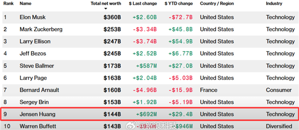 憑借這一傲人成績,黃仁勛的個人身家達(dá)到1440億美元,一舉超越了“股神”沃倫·巴菲特(1430億美元),在全球富豪榜上攀升至第九位。