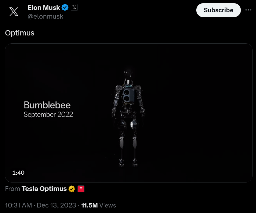 毫無預兆,今天早上,馬斯克在 X 上發了條視頻,官宣了特斯拉新一代的人形機器人——擎天柱( Optimus )二代。