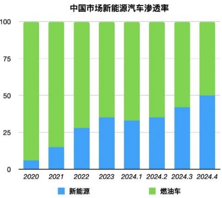 據乘聯會數據顯示,當前新能源汽車的市場滲透率已經突破50%,這也意味著汽車“電進油退”突破了一個重要關口,這不僅是新技術普及的關口,也是消費者接受新能源汽車的“心理關口”。