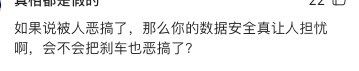 比如有用戶表示:如果說被人惡搞了,那么你的數據安全真讓人擔憂啊,會不會把剎車也惡搞了?
