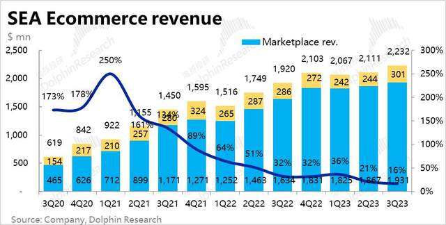 因此,本季度Shopee實現營收22.3億美元,雖也的確創歷史新高,但環比提升不過1億元出頭,領先市場預期的幅度不過2%。同樣沒有在預期目標外帶來更多的驚喜。