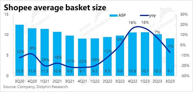 以上來看,本季度Shopee成功扭正訂單額和訂單量增速值得肯定,但GMV相比市場預期僅領先了約1%,改善幅度并無有超預期的驚喜。