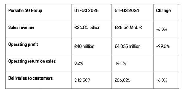 當地時間24日,德國大眾旗下保時捷發布了最新的財報數據。今年前九個月,該公司營業收入約為268.6億歐元,同比下降6%。第三季度虧損達9.66億歐元(約合人民幣80億元)。