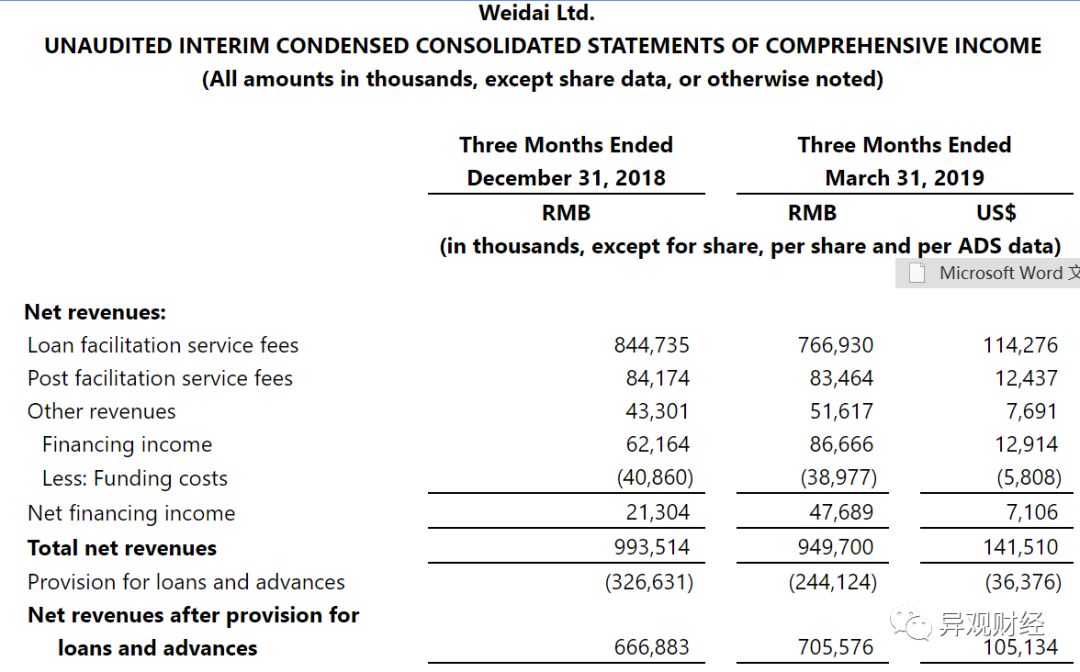 財報顯示,第一季度,微貸網貸款便利服務費和貸后服務費均出現不同程度下滑。