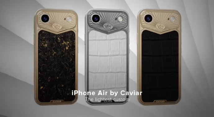 以奢華材料打造智能手機和配件聞名的品牌Caviar又上新了,這次是iPhone Air。據報道,日前,Caviar推出AirLine系列,發布定制版iPhone Air,手機由黃金、航空級鈦金屬、鱷魚皮等奢華材質打造。