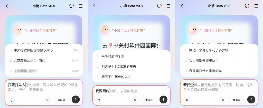 【TechWeb】9月26日消息,滴滴開啟公測AI出行助手“小滴Beta v0.8版本”,該功能在滴滴派單系統(tǒng)上,通過智能理解用戶需求,為用戶提供定制化的用車方案。
